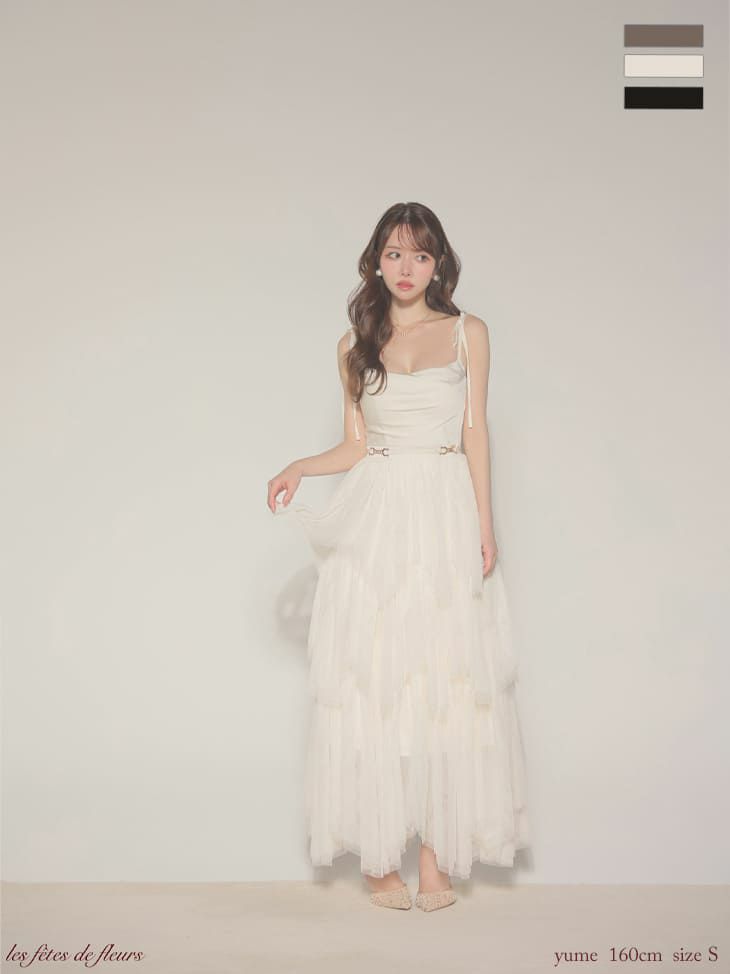 3. 【ROBEdeFLEURS/ローブドフルール】 キャミソール ドレープネック ティアードスカート サテン チュール Aラインロングドレス (LF4636)