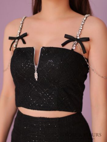 素材 スパンコール生地、刺繍レース、ラメニット