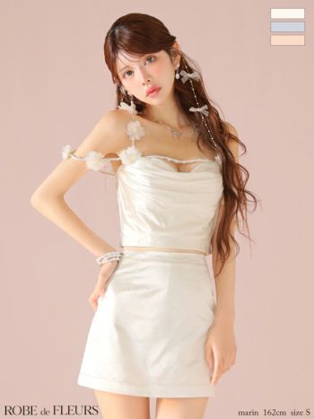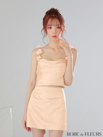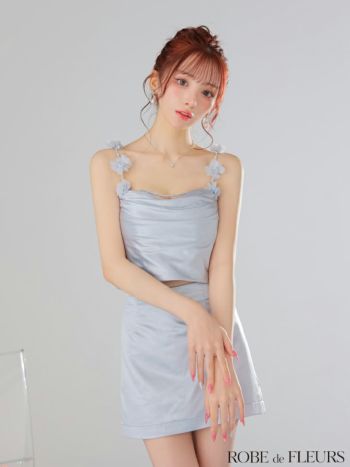 キャバドレス ROBEdeFLEURS ローブドフルール フラワーストラップ サテン キャミソール セットアップ タイトミニドレス