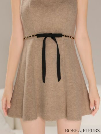 3. 予約商品【10月上旬入荷予定】【ROBEdeFLEURS/ローブドフルール】ノースリーブ ウエストリボン ラメ メルトン シンプル ガーリー フレアミニドレス (fm3474)