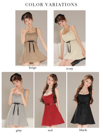 4. 予約商品【10月上旬入荷予定】【ROBEdeFLEURS/ローブドフルール】ノースリーブ ラメ メルトン ウエストリボン シンプル ガーリー フレアミニドレス (fm3474)