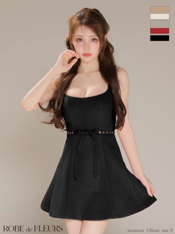 キャバドレス ROBEdeFLEURS ローブドフルール メルトン シンプル ノースリーブ ウエストリボン ラメ ガーリー フレアミニドレス