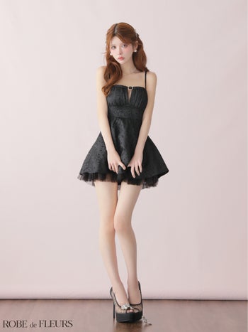 3. 予約商品【3月中旬入荷予定】【ROBEdeFLEURS/ローブドフルール】ドッキング キャミソール ジャガード チュール フレアミニドレス (fm3482)