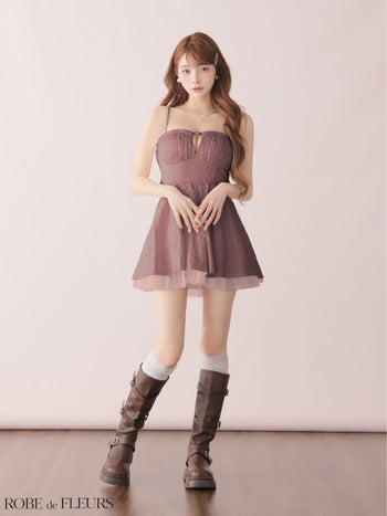 4. 予約商品【3月中旬入荷予定】【ROBEdeFLEURS/ローブドフルール】ドッキング キャミソール ジャガード チュール フレアミニドレス (fm3482)