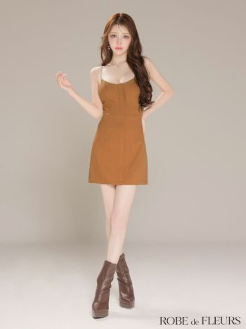 3. 予約商品【2月下旬入荷予定】【ROBEdeFLEURS/ローブドフルール】ジップデザイン キャミソール ビジュー シンプル フレアミニドレス (fm3793)