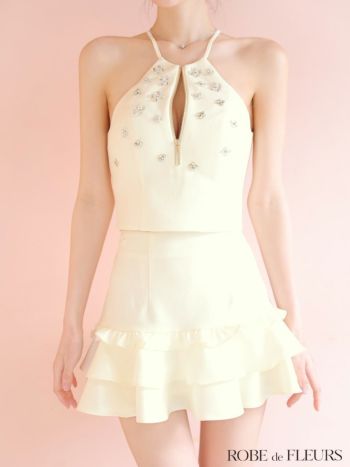 バスト約77cm ウエスト約55~62cm ヒップ約83cm 着丈(トップス)脇下約16cm(スカート)約31cm
