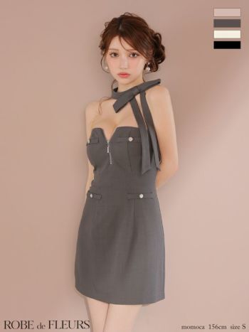 XSあり!ガーリー感たっぷり♡ 【ROBEdeFLEURS/ローブドフルール】ジップデザイン ネックリボン 2way ホルターネック タイトミニドレス (fm4111)
