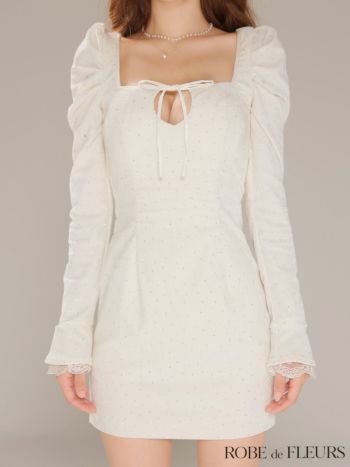 素材 ストーン付きベロア、サテン、スカラップレース