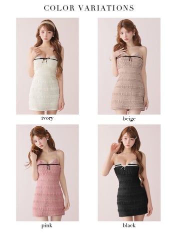 4. 予約商品【3月中旬入荷予定】【ROBEdeFLEURS/ローブドフルール】レース フリル バイカラー キャミソール バストリボン タイトミニドレス (fm4181)