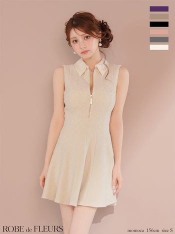 XS~Lあり!女性らしさ満点のフェミニンドレス♡ 【ROBEdeFLEURS/ローブドフルール】シンプル ラメ 襟付き ノースリーブ ジップデザイン フレアミニドレス (fm4212)