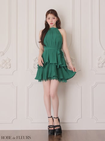 キャバドレス ROBEdeFLEURS ローブドフルール ワンカラー プリーツ ホルターネック シフォン ウエストリボン フレアミニドレス