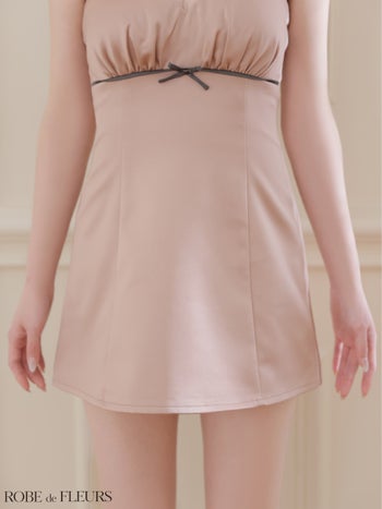 XSあり!ミニリボンがcute♪ 【ROBEdeFLEURS/ローブドフルール】ベアトップ サテン オーガンジー リボン ギャザー タイトミニドレス (fm4648)
