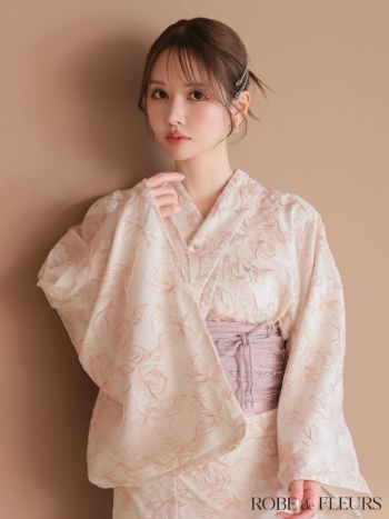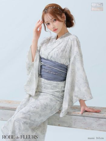 4. 【浴衣】【ROBEdeFLEURS/ローブドフルール】ビジュー ガーリー フラワー刺繍 レース 選べる2点or3点SET [浴衣+兵児帯+帯紐or帯紐なし] (fm4220)