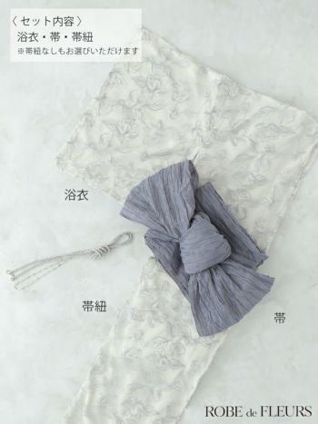 上品なレースデザイン♪ 【浴衣】【ROBEdeFLEURS/ローブドフルール】ビジュー ガーリー フラワー刺繍 レース 選べる2点or3点SET [浴衣+兵児帯+帯紐or帯紐なし] (fm4220)