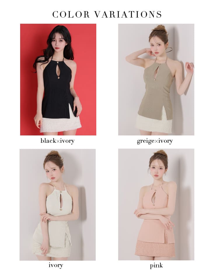 他の画像を見る XSあり!可愛らしさがありつつ甘すぎないデザイン☆ 予約商品【2月下旬入荷予定】【Glossy by ROBE de FLEURS/グロッシー】ホルターネック バストカット バックリボン ゴールドボタン レース リブ セットアップ タイトミニドレス (GL4175) 予約 ¥ 29,480 税込 詳細を見る お気に入りに登録する