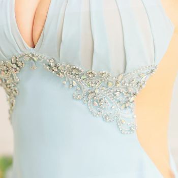 4. SALE【Angel R/エンジェルアール】デコルテビジュー ホルターネック タックデザイン シフォン フレアミニドレス (AR24320)