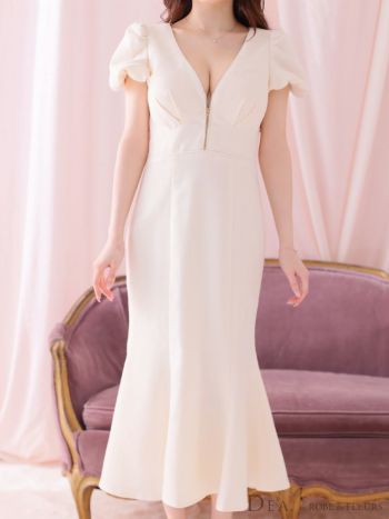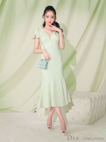 4. SALE【DEA.by ROBE de FLEURS/ディア】パフスリーブ フロントジッパー マーメイドワンピース フレアロングドレス(DE2888)