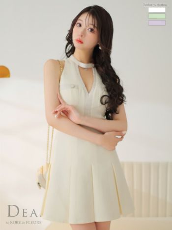 3. SALE【DEA.by ROBE de FLEURS/ディア】フェイクポケット ベルト切り替え スプリングツイード バストカット アメリカンスリーブ フレアミニドレス(DE3519)