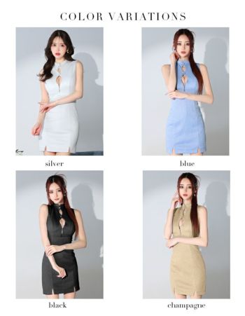 4. SALE【Glossy by ROBE de FLEURS/グロッシー】ストレッチ ラメ入りサマーリブニット ジップデザイン バストボタン ノースリーブ タイトミニドレス(GL3540)