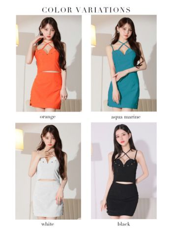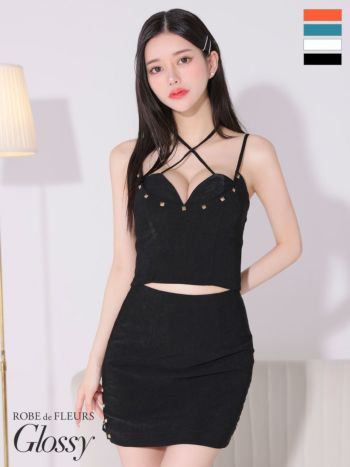 3. SALE【Glossy by ROBE de FLEURS/グロッシー】スタッズ セットアップ セクシー キャミソール スエード フロントクロス タイトミニドレス (GL3542)