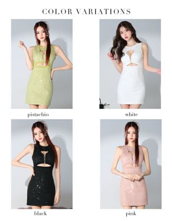 3. SALE【Glossy by ROBE de FLEURS/グロッシー】スパンコール ツイード ダブルジップデザイン ノースリーブ ウエストカット リブニット タイトミニドレス(GL3713)