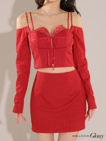 バスト約77cm ウエスト約57~62cm ヒップ約81cm 着丈(トップス)約34cm(スカート)約35cm