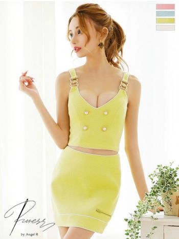 XSあり!シンプルながらも存在感抜群☆ SALE【PURESS/ピュアレス】ショルダーバックル バストパールボタン ノースリーブ ツイード セットアップ ジップデザイン タイトミニドレス (PS302405)
