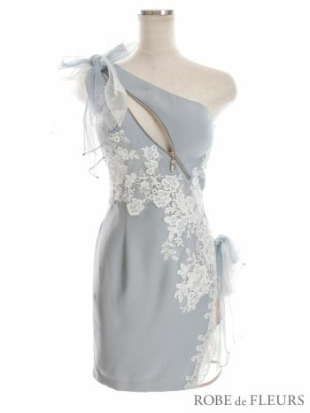 4. SALE【ROBEdeFLEURS/ローブドフルール】キュート シフォンリボン ワンショルダー アシンメトリージッパー タイトミニドレス(FM2605)
