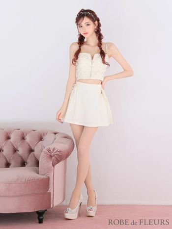 3. SALE【ROBEdeFLEURS/ローブドフルール】ガーリー チェックビジュー キャミソール サイドリボン ジップデザイン セットアップ タイトミニドレス(FM3722)