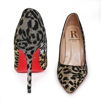 【Rechercher/ルシェルシェ】キャバヒール ヒョウ柄 ポインテッドトゥ パンプス[シルバーゴールド][22.5cm~25.0cm][10cmヒール]