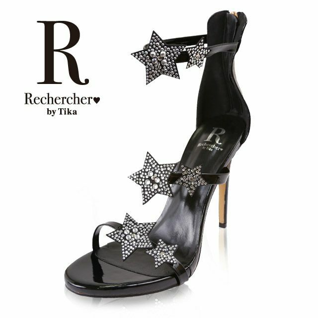 4. 【Rechercher/ルシェルシェ】キャバヒール スターモチーフ サンダル[ブラック][22.5cm~25.0cm][11cmヒール]