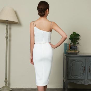キャバドレス 高級ブランド Veautt ヴュート スリット ワンカラー ビジューベルト アシンメトリー キャミソール ひざ丈ドレス