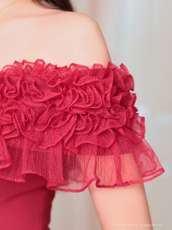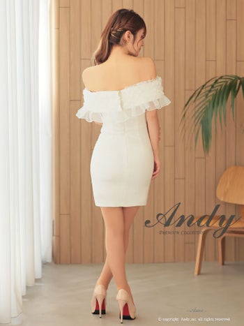 キャバドレス ミニドレス an アン オフショル ワンカラー フリル シンプル 半袖 タイトミニドレスのメイン画像3
