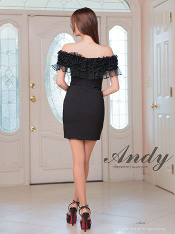 キャバドレス ミニドレス an アン オフショル ワンカラー フリル シンプル 半袖 タイトミニドレスの詳細画像3