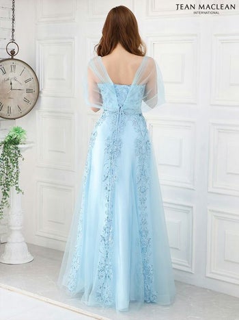 3. SALE【JEANMACLEAN/ジャンマクレーン】オフショルダー バースデー ラメ刺繍デザイン Aラインロングドレス (21266)