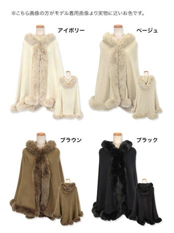 4. SALE【LaLaTulle】フェイクファー フード付き ワンカラー 大判 ショール