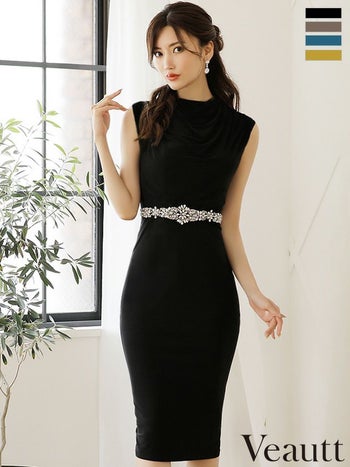 3. SALE【Veautt/ヴュート】エレガント ドレープ ウエストビジューVバック タイトひざ丈ドレス (VT05228)