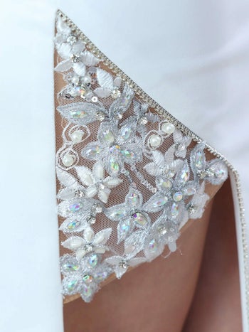 3. 【Angel R/エンジェルアール】フラワービジュー パール セクシー スリット オフショルダー くびれ透け タイトロングドレス (AR24336)