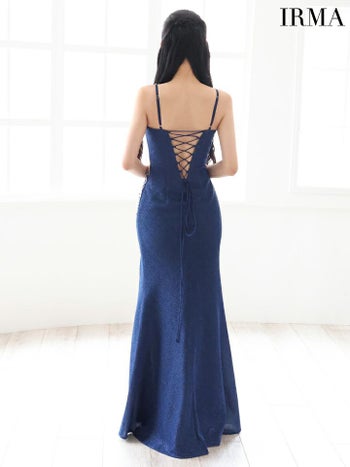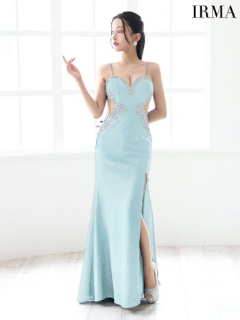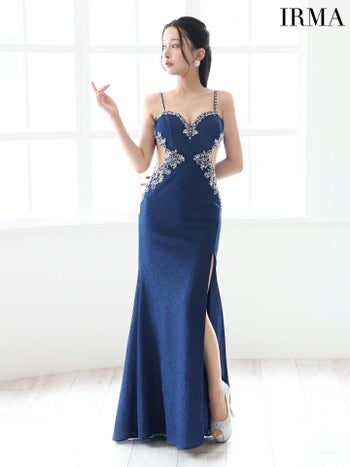 4. 【IRMA/イルマ】セクシー オープンバスト キャミソール くびれ透け ビジュー ラメニット スリット タイトロングドレス (51778)