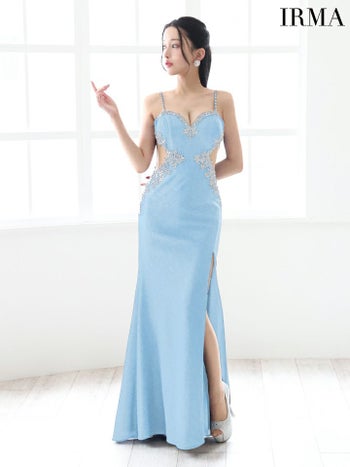大人の色気が溢れるデザイン♪ 【IRMA/イルマ】セクシー オープンバスト キャミソール くびれ透け ビジュー ラメニット スリット タイトロングドレス (51778)