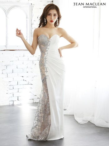 4. 【JEANMACLEAN/ジャンマクレーン】スパンコールレース刺繍ネット サイドシースルー タイトロングドレス[アイボリー]
