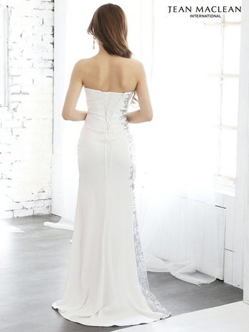 3. 【JEANMACLEAN/ジャンマクレーン】スパンコールレース刺繍ネット サイドシースルー タイトロングドレス[アイボリー]