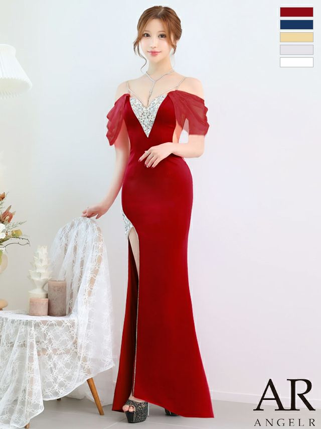 他の画像を見る バストビジューが美しい☆ 【Angel R/エンジェルアール】肩あき バストビジュー くびれ透け メッシュ スリット セクシー オープンバスト フリル タイトロングドレス (AR24839) ¥ 38,280 税込 在庫切れ 詳細を見る お気に入りに登録する