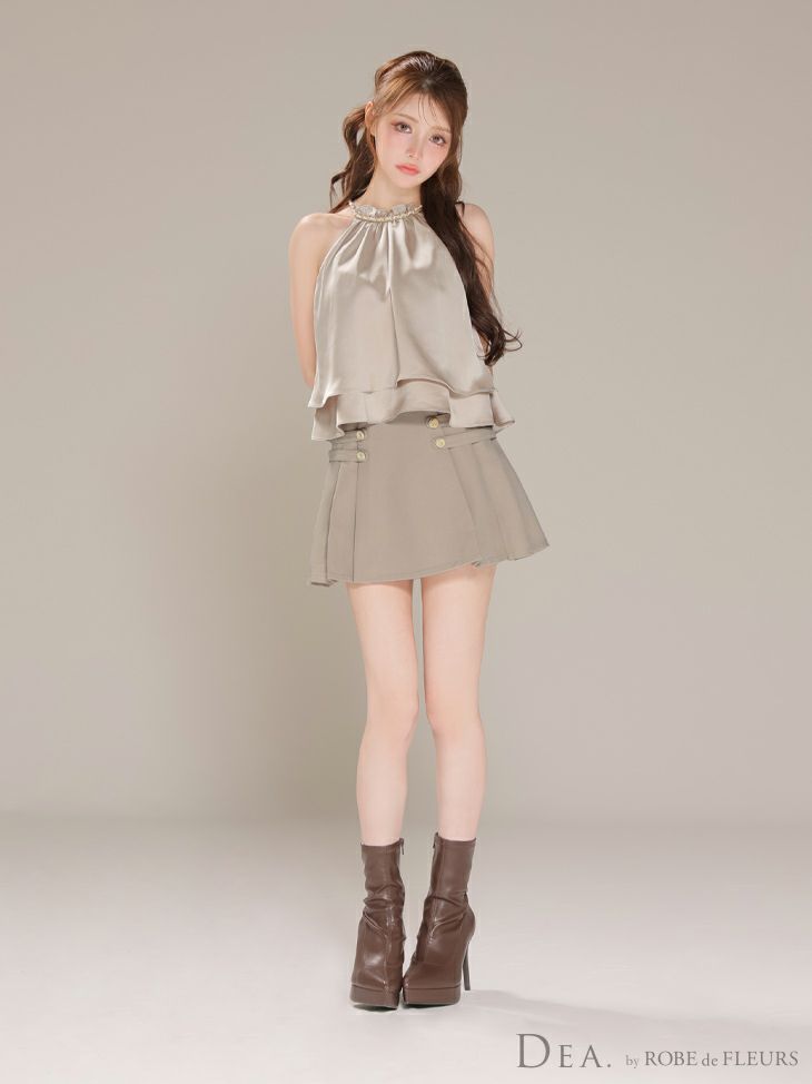 ・ウエスト部分にフリルがついており、おなか周りもカバーできるペプラムデザイン、
