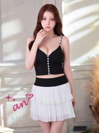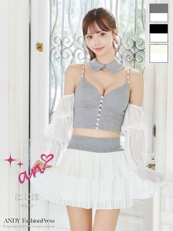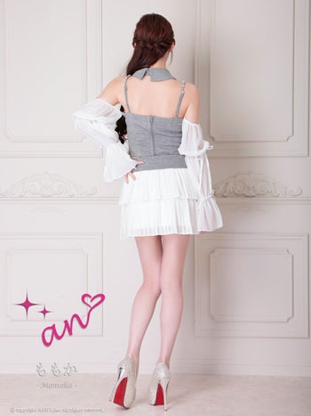 キャバドレス an アン ビジュー シフォン 襟 3way セットアップ キャミソール 袖あり フレアミニドレス