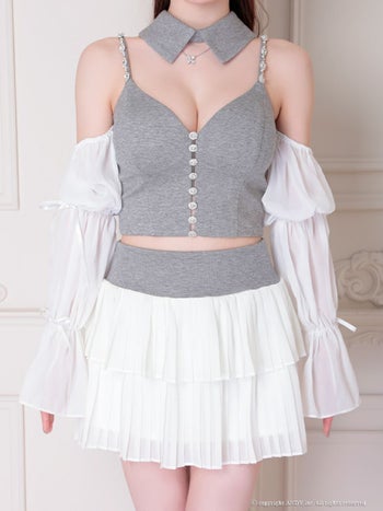 ビジュー シフォン 襟 3way セットアップ キャミソール 袖あり フレアミニドレスのメイン画像15