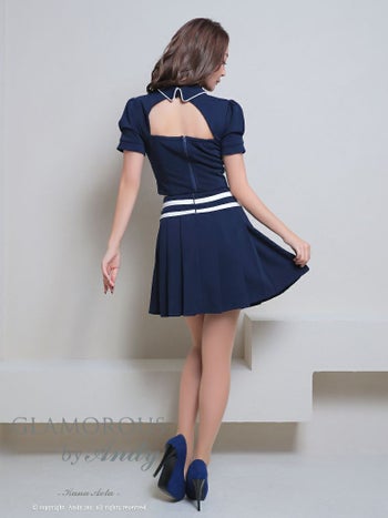 4. 【GLAMOROUS/グラマラス】バストカット 半袖 襟付き バイカラー ジップデザイン セットアップ フレアミニドレス(gmsv796)
