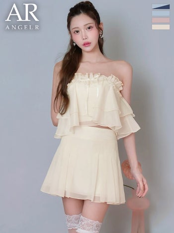キャバドレス Angel R エンジェルアール ベアトップ セットアップ シアー シフォン リボン フリル フェミニン フレアミニドレス