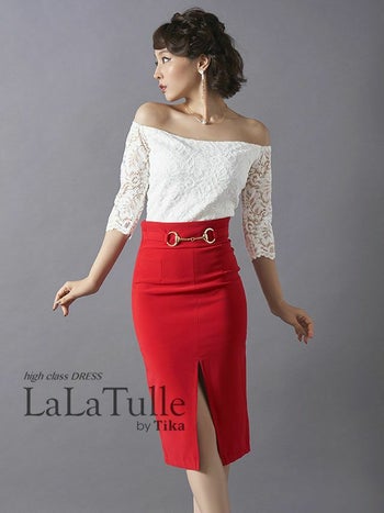 キャバドレス LaLatulle ララチュール レース七分袖オフショルダータイトセットアップドレス (ホワイト×レッド/ホワイト×ブラック) (Sサイズ/Mサイズ/Lサイズ)(青田夏奈 着用)【送料無料】