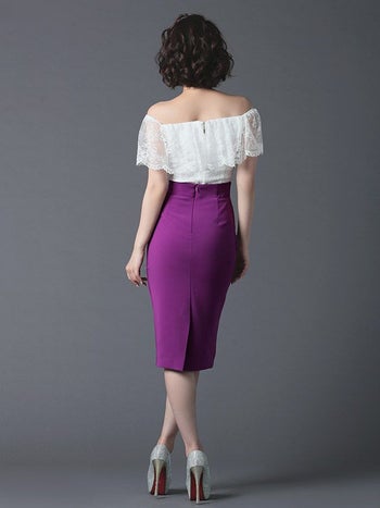 ラグジュアリーな総レースのトップスに色気のあるミモレ丈のスカートのセットアップドレス♪
